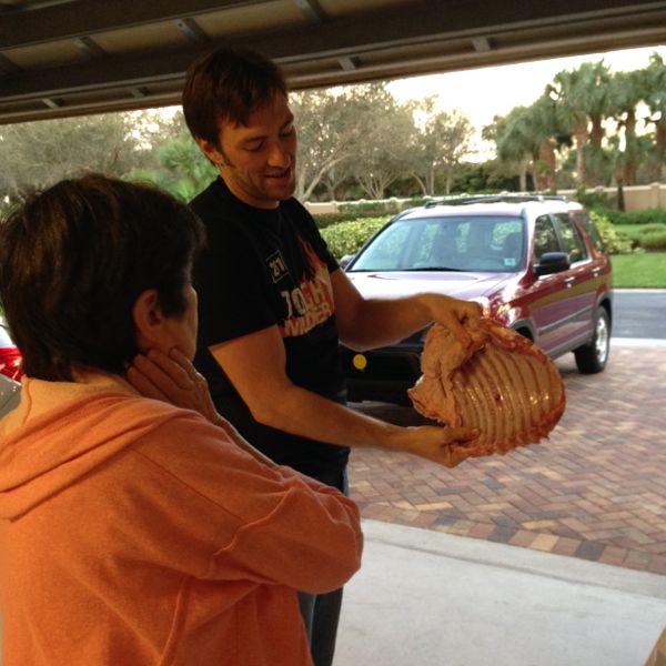 Roast 1 whole sugar pumpkin in the oven on 350F for ~1.25 hours. Place a baking sheet under the pumpkin on the rack below in case it leaks. Remove pumpkin from oven and slice in half to let it cool. Then, remove seeds (keep them to roast or just toss) and scoop out the pulp into a bowl. Mash it with a fork until smooth.