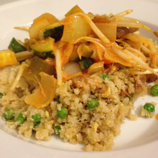 In the meantime, heat ~1 tbsp olive oil in a pot and brown your meat. When cooked, remove meat from the pan and drain the fat. Set meat aside. In the same pan, saute all the veggies 5-10 minutes until soft. Add in the spices and cook a few more minutes.